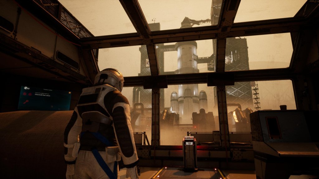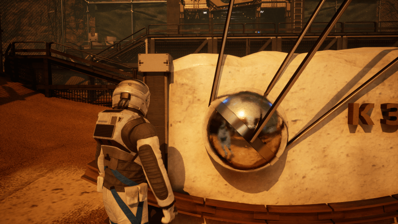 Even knowing this place is likely empty (I mean it’s been 5 years of no power, who is surviving here and if so HOW?!) it gives off such a creepy atmosphere. Of course things aren’t as easy as “Land. Find big space elevator, head down to moon.” The power being off for the Pearson Station is a separate issue to the power not being beamed down to Earth. Obviously but like…Convenience? Our first problem we encounter, after docking at Pearson Space station is that there is *Surprise* no power, which means the life support system that pumps breathable oxygen around isn’t working. This little titbit makes the thought of something else being here with us all the more terrifying because if the power went out five years ago, it means there’s been no air supply for five years too. Nothing good survives that. Rolf has a look around and there appears to be a power cell lying around we can plug in. You’d think that the people who managed to create something as innovative as Stream tech would maybe work on their own system to get rid of these sorts of things. Unfortunately, all this does is open a door, rather than restore oxygen and solve our power issues. A quick Zero G foray past some handy oxygen tanks we can nab finds up a second power cell. This is used to power the door we’ve opened, but from the other side, allowing us to back track and get our first power cell. Honestly, it’s like a space version of towers of Hanoi, but with a lot more risk and less strangers on TikTok challenging you to do it blind folded (Looking you Jackherita).